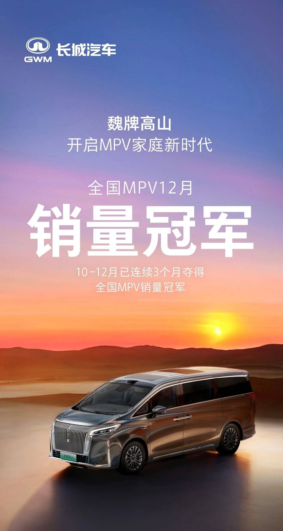 2025年收官之際,魏牌高山亮出了一張亮眼成績單——不僅再度登頂12月單月銷量榜首,更以7-12月累計銷量斷層領先的成績,成功加冕“雙銷冠”,奠定其在高端MPV市場的領先地位。
