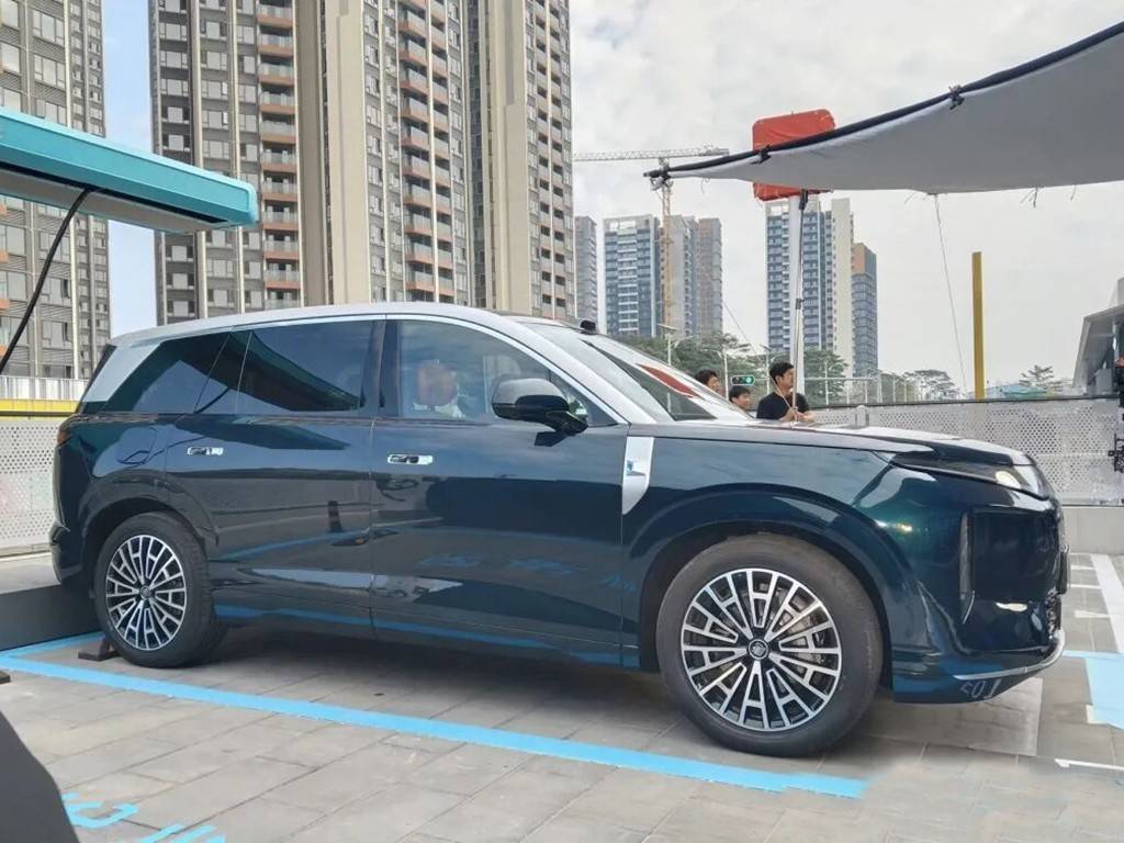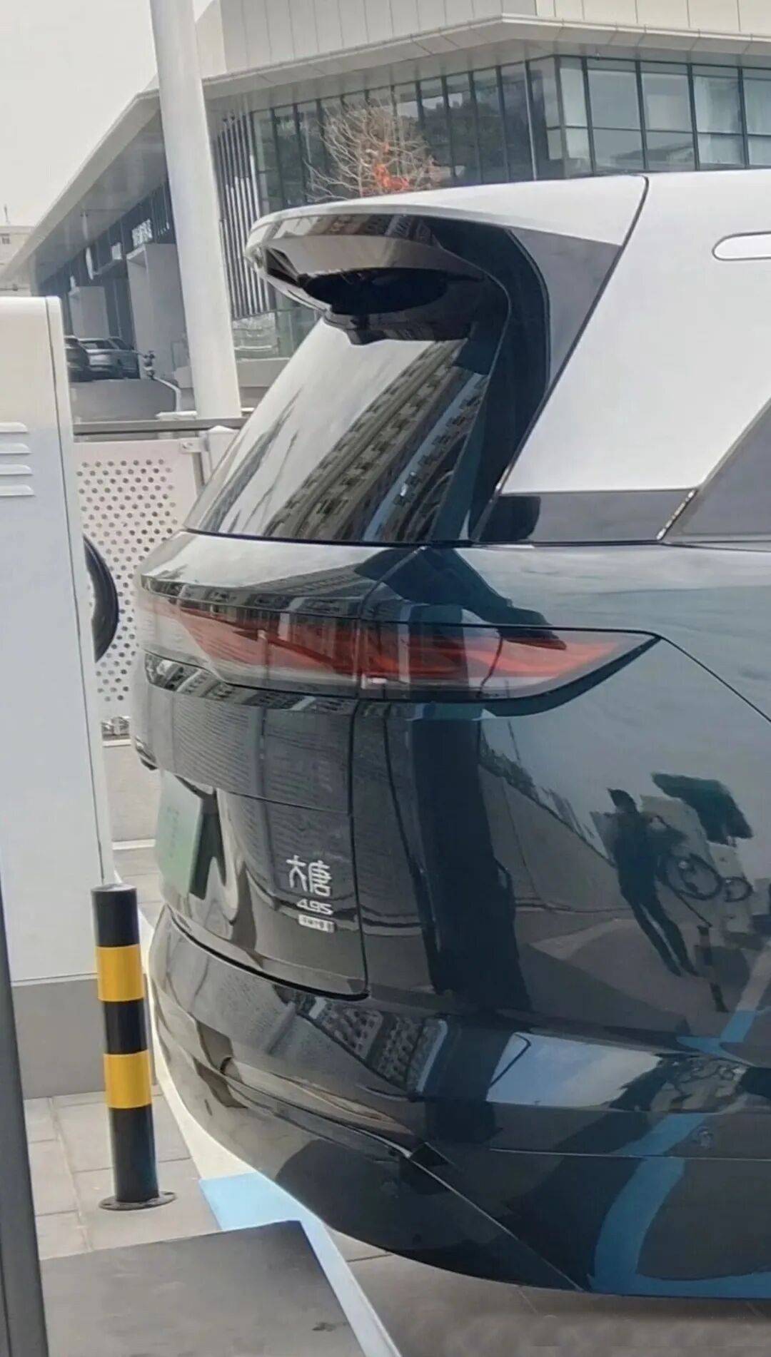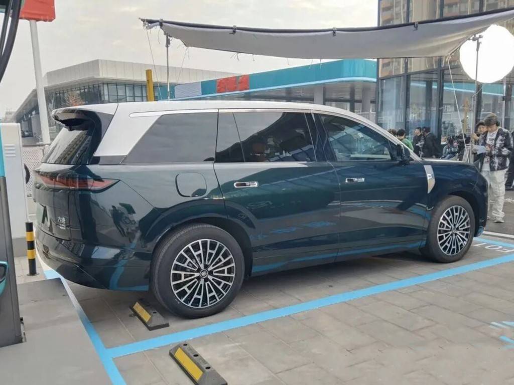 來到側面,這款大唐的側面造型和比亞迪高端品牌的N9/N8L很是相似,主打的也是一個方正大氣敦實,無愧于旗艦級SUV的定位。與此同時,車頂也采用了雙色車身,配合上隱藏式的門把手和大尺寸的輪圈,整個氣場和體量感我覺得是一點兒也不輸自家的。