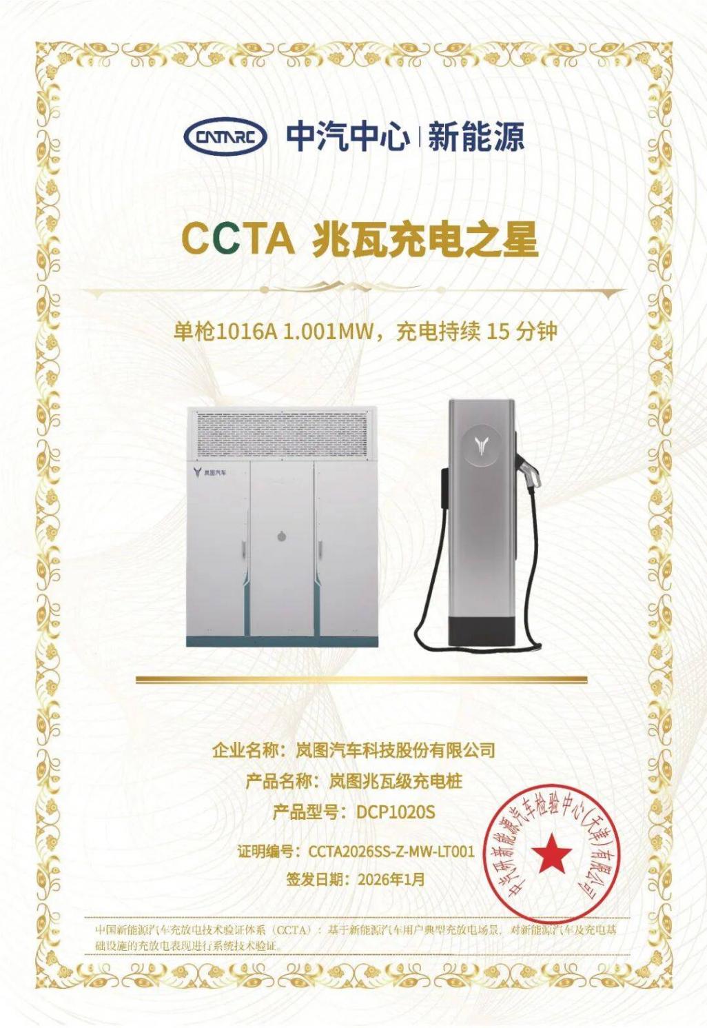 獲評中汽研“兆瓦充電之星”