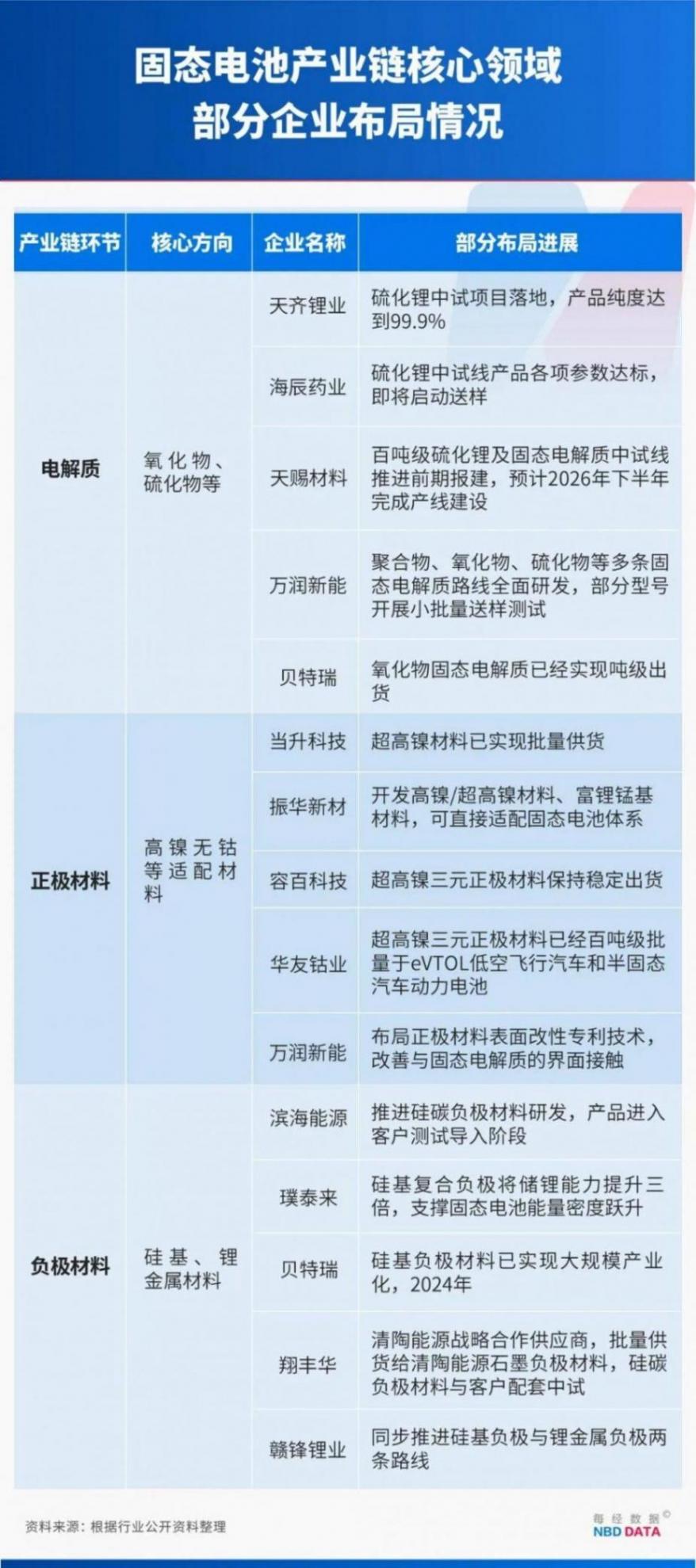 愛建證券在相關研報中指出,固態電池行業正進入產業化加速期,上游材料體系與工藝設備將迎來全面革新,傳統鋰電池供應鏈的價值分配邏輯被打破,新的產業生態正在形成,電解質、正負極材料領域將迎來重構機遇。