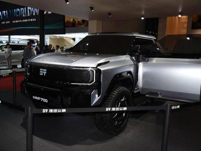 這是一款皮卡車型,沒錯,奇瑞也要造皮卡了。造型風格向縱橫G700靠攏,整體觀感比較硬朗,具備較大的接近角和離去角。內飾部分也延續(xù)了縱橫G700的風格,線條的使用都比較方正硬朗。動力部分,縱橫F700會搭載一套插混動力,發(fā)動機排量為2.0T,所以動力部分應該會有較大冗余,另外,傳聞電機會采用四電機布局,最大功率達到1200kW,是一個比較夸張的表現(xiàn)。