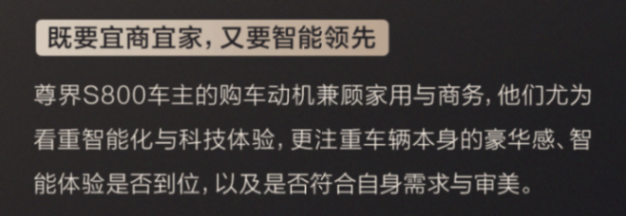 這讓他們選擇尊界S800,既能滿足商務場合彰顯身份的需求,也能享受到前沿的智能科技體驗。