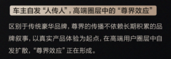 尊界S800的成功也離不開車主之間的口碑傳播,特別是在高端車圈層內的“尊界效應”。許多車主表示,他們在朋友之間主動推薦尊界S800,這種“人傳人”的推薦方式已在高端車主群體中形成自發裂變。