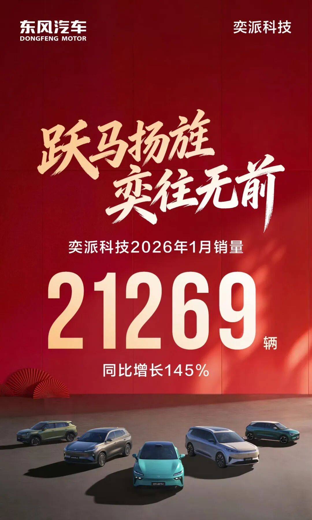 據(jù)悉,東風(fēng)奕派首款2026年新品將于一季度開始逐步亮相,后續(xù)車型將按計(jì)劃逐步推出,持續(xù)為用戶帶來更具競爭力的智能出行產(chǎn)品與體驗(yàn)。隨著改革紅利釋放,從2026年開始,奕派也進(jìn)入高速發(fā)展期。就在2月1日,奕派科技發(fā)布的銷量數(shù)據(jù)顯示,該公司2026年1月銷量21269輛,同比增長145%,贏得新年“開門紅”。