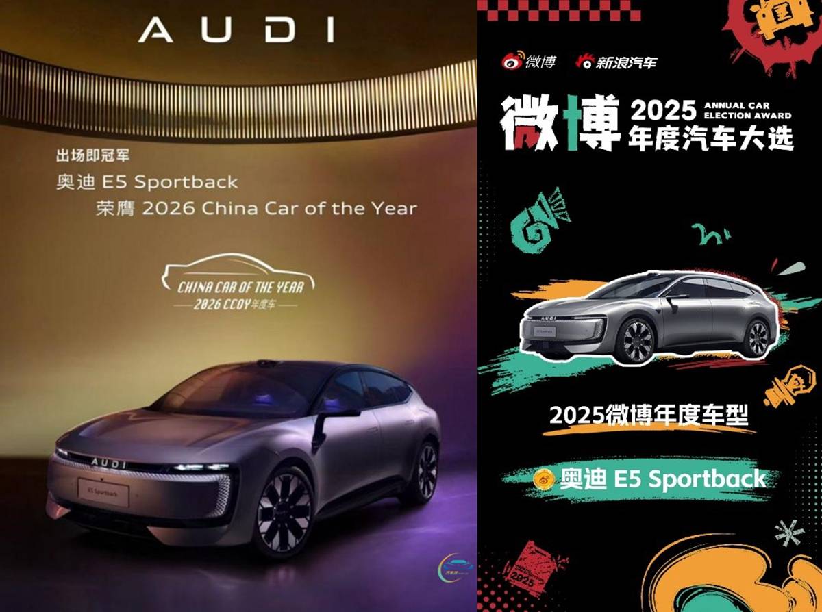 途昂Pro獲得“微博年度卓越車型”的同時,被網友們譽為“豪華品牌最成功轉型”的上汽奧迪,旗下AUDI品牌首款新車E5 Sportback,也獲評“2025微博年度車型”以及“中國年度車”等榮譽。