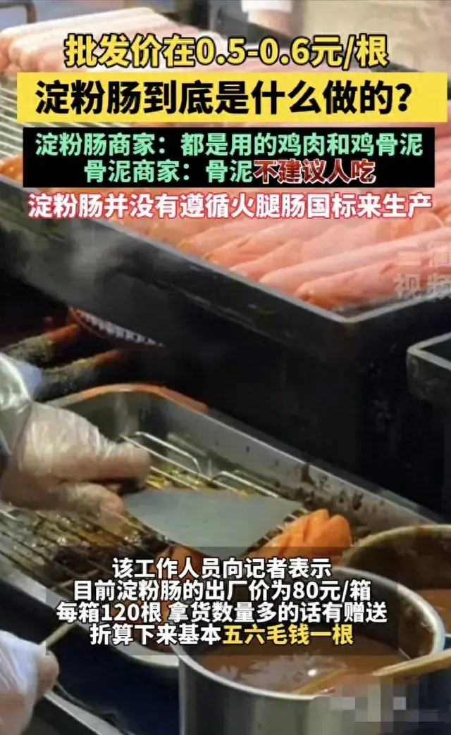 提到它的名字淀粉腸都會以為是淀粉做的。其實不然,經被爆出里面都含有雞肉和骨泥。