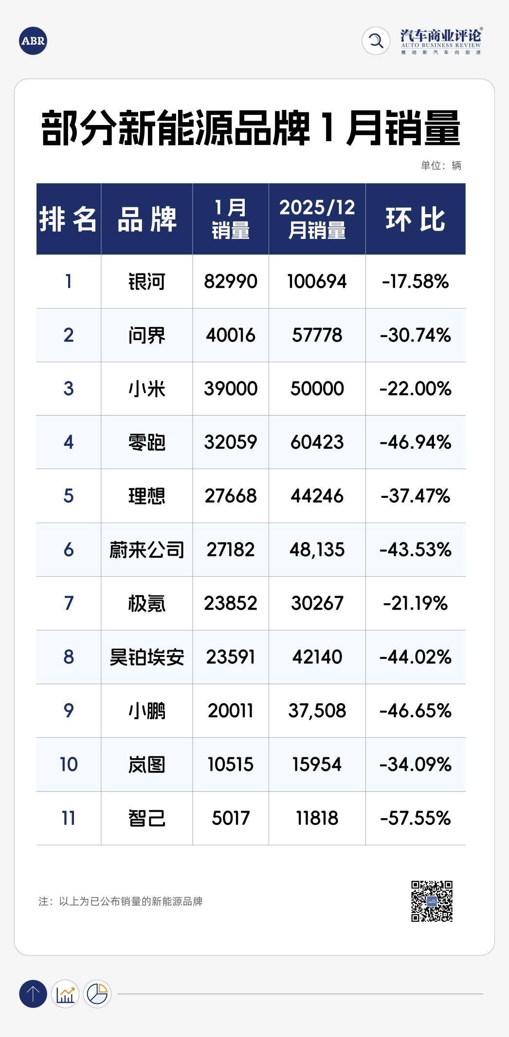 從已公布的銷量看,2026年1月行業呈現兩個特征,第一是頭部新勢力排名洗牌,第二是傳統車企的“體系化能力”對沖淡季波動。