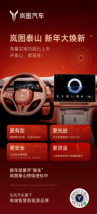 2026年2月4日,嵐圖汽車正式向嵐圖泰山車主推送首次整車OTA升級。本次升級圍繞華為乾崑智能駕駛ADS 4.1系統展開,涵蓋智能座艙、輔助駕駛與越野性能三大板塊,依托“商務+越野”雙場景融合優勢,重新樹立高端商務SUV的價值標準。
