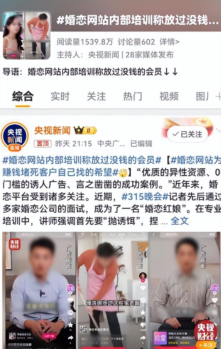 2024年3月15日晚間,央視“3·15”晚會曝光了多家婚戀平臺存在的亂象,其中包括珍愛網、世紀佳緣、戀愛課等知名平臺。