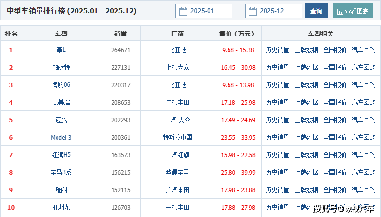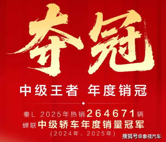 秦L同期也熱銷264671輛,連續兩年(2024-2025)斬獲中型轎車市場年度銷量冠軍。
