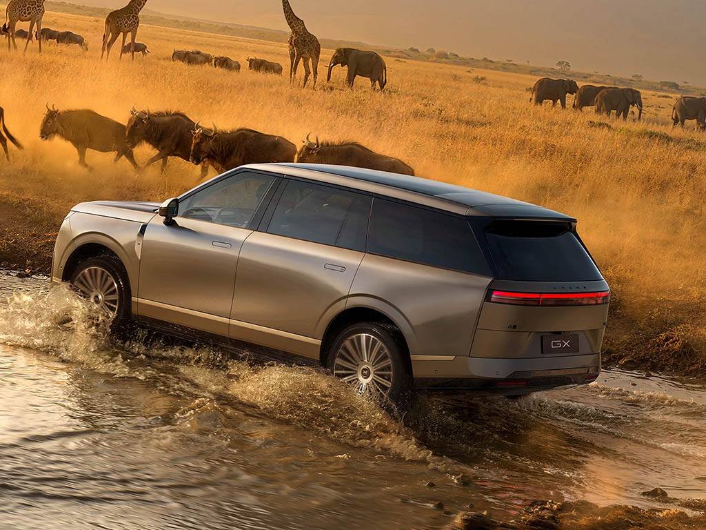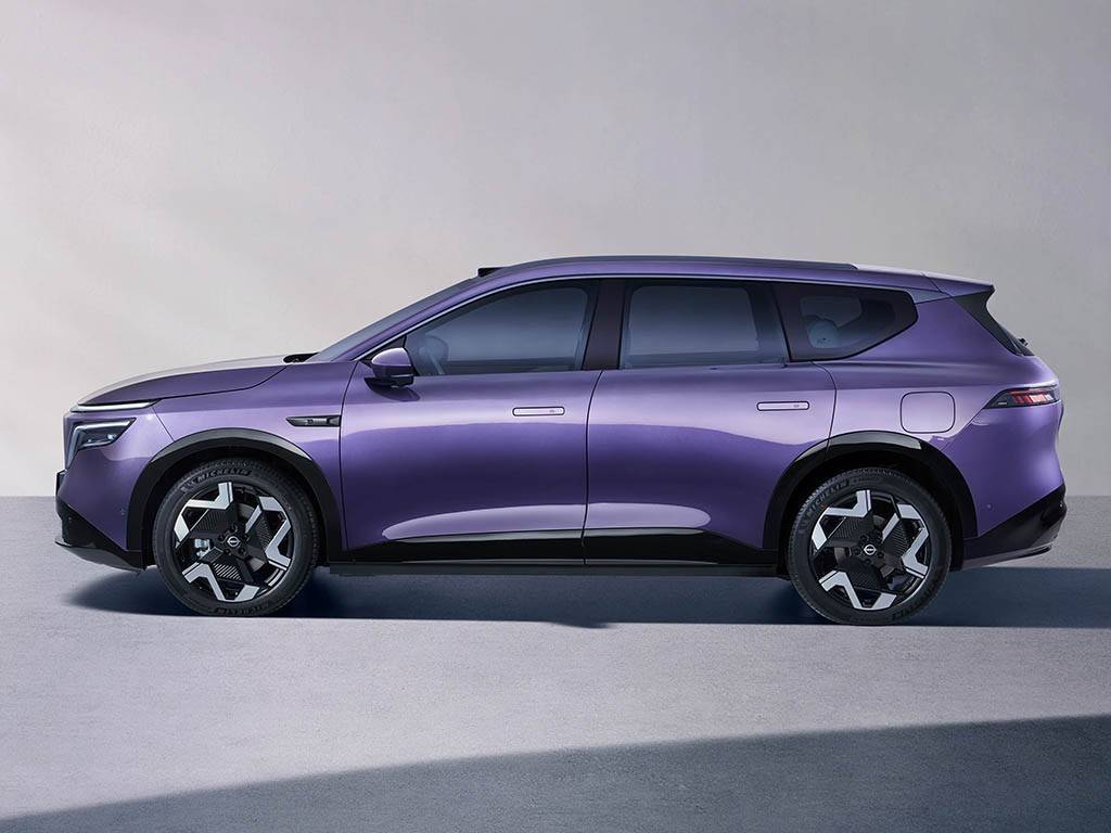 側(cè)面擁有簡潔流暢的車身線條,并采用時下流行的懸浮車頂設(shè)計。此外,新車還搭載密輻輪圈,并采用隱藏式門把手設(shè)計。尾部整體設(shè)計思路與前臉相呼應(yīng),采用了辨識度較高的貫穿尾燈組。尺寸上,新車長寬高分別為5265*1999*1800mm,軸距為3115mm。車內(nèi)采用三排座椅布局。動力將提供增程和電動兩種形式可選。