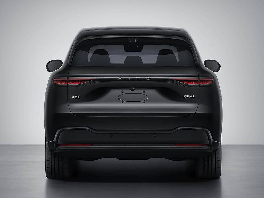 側(cè)面整體造型簡潔流暢,門把手為半隱藏式設(shè)計,搭載造型動感的五輻輪圈,并配備紅色剎車卡鉗。尺寸方面,新車長寬高分別為4960*1985*1736mm,軸距為2950mm。車尾是貫穿式尾燈,發(fā)光的“AITO”車標(biāo)也融入到了燈組中,以進(jìn)一步提升品牌辨識度。動力有增程和純電,增程版提供37kWh、53kWh兩種電池容量;純電版提供100kWh一種電池容量。其中純電動版車型采用雙電機(jī)布局,前后電機(jī)功率分別為227千瓦。