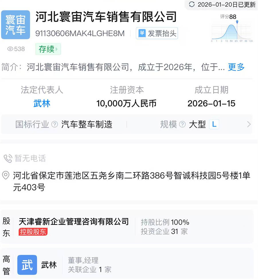 但這事,與長(zhǎng)城汽車也逃不了關(guān)系。天眼查APP顯示,河北寰宙由天津睿新企業(yè)管理咨詢有限公司100%持股,表面上與長(zhǎng)城汽車沒(méi)什么關(guān)聯(lián)。但天津睿新曾間接投資蜂巢能源旗下多家公司,而蜂巢能源與長(zhǎng)城汽車的關(guān)系盡人皆知。