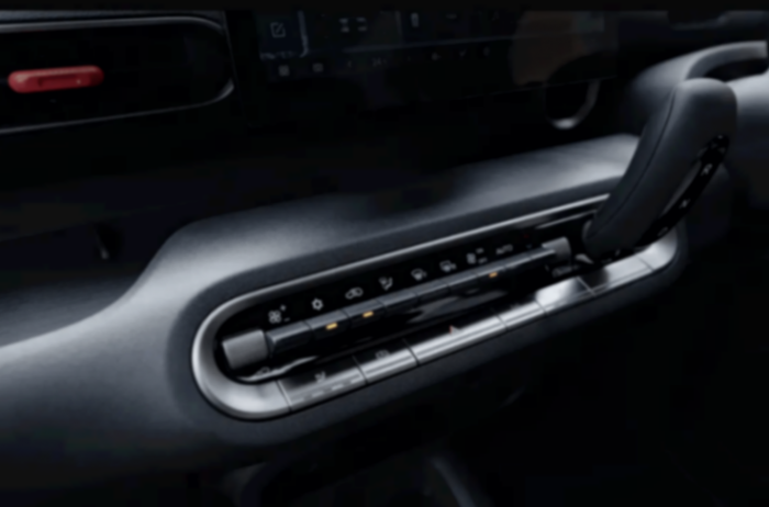 新車采用了三輻式方向盤+懸浮式液晶儀表和中控大屏的組合,整體比較簡潔,但保留了大量實體按鍵。比較有特點的是那個復古的擋把,設計在了中控屏幕下方,空調按鍵旁邊。既方便操作,也為中控區域留出了更多的儲物空間。
