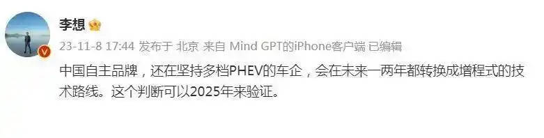 記得在2023年前后,理想汽車創始人李想曾在社交媒體上表示,未來自主品牌主打多擋插混的車企,基本上都會轉到單擋插混或者增程式電動車上來看,當時遭到了業內各種抨擊,有些罵得還非常難聽。但是到了2025年和2026年的時間節點,很多小伙伴驚奇地發現,還真讓他說中了,辦過汽車網站的車企創始人,還是有點東西的。