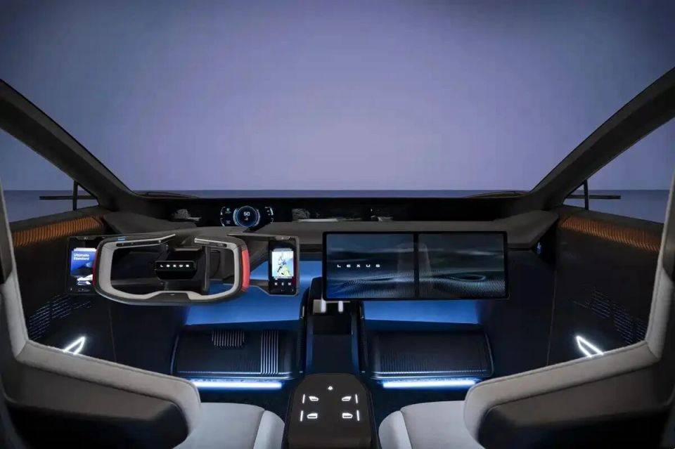 內飾方面,未來感強化,方形方向盤,全液晶儀表盤采用前置方式,方向盤前方也搭配兩側小屏幕,中控屏幕和副駕駛屏娛樂屏采用聯屏設計。