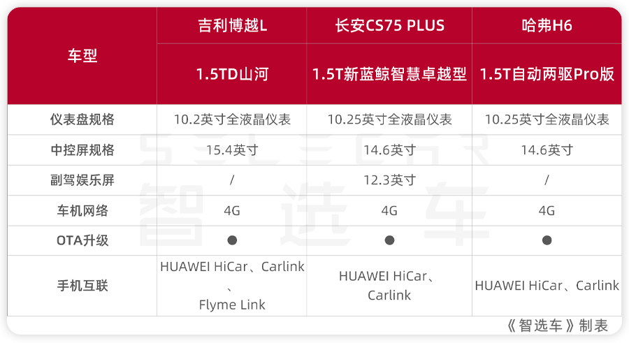 吉利博越L和哈弗H6都匹配7速濕式雙離合變速箱,長安CS75 PLUS則是愛信8AT變速箱。