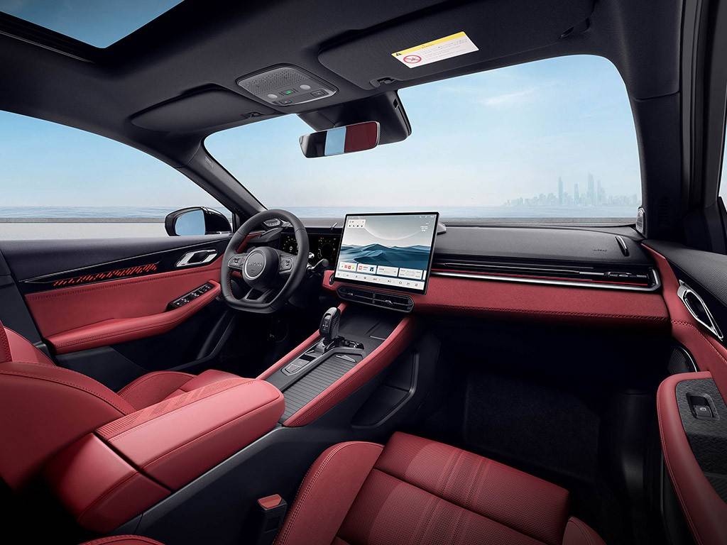 內飾的話,用的也還是和現款領克03 2.0TD車型一樣的設計,提供熾熱紅內飾,配備三輻式平底運動方向盤+全液晶儀表盤以及中控多媒體大屏,中控通道區域還配備了電子換擋桿,看起來也有幾分寶馬雞腿擋把的意思。