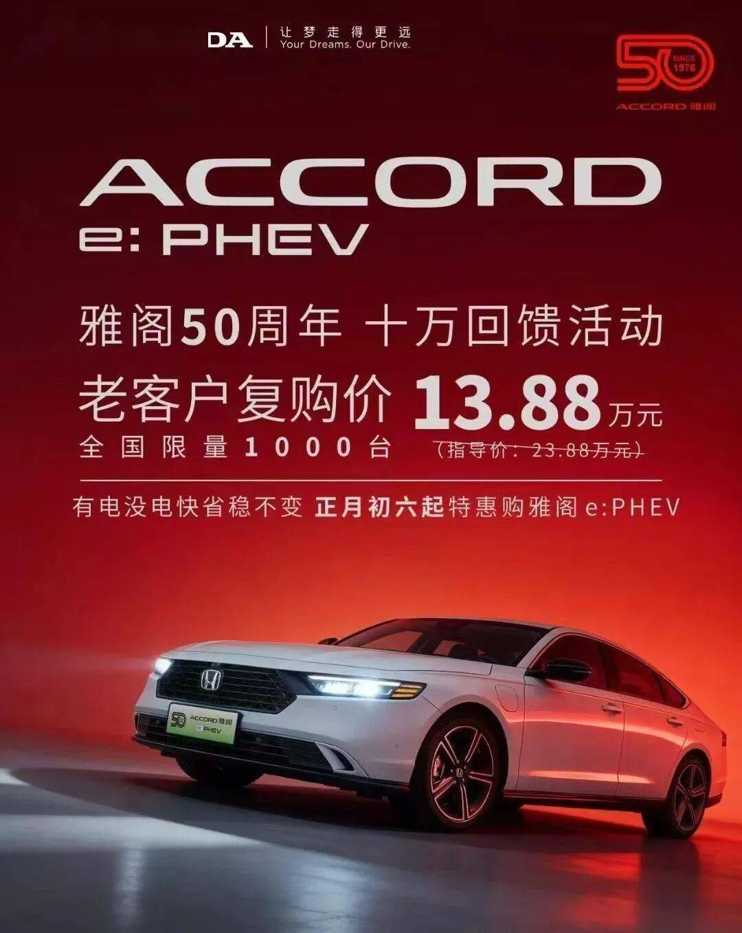 全國限量1000臺,參與活動的車型是雅閣e:PHEV尊貴版。但確實是庫存或需要消化的車型。