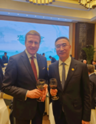 在歡迎午宴上,寶馬集團(tuán)董事會主席、CEO齊普策(Oliver Zipse)與朱江明進(jìn)行了交流,還拍攝了合影。