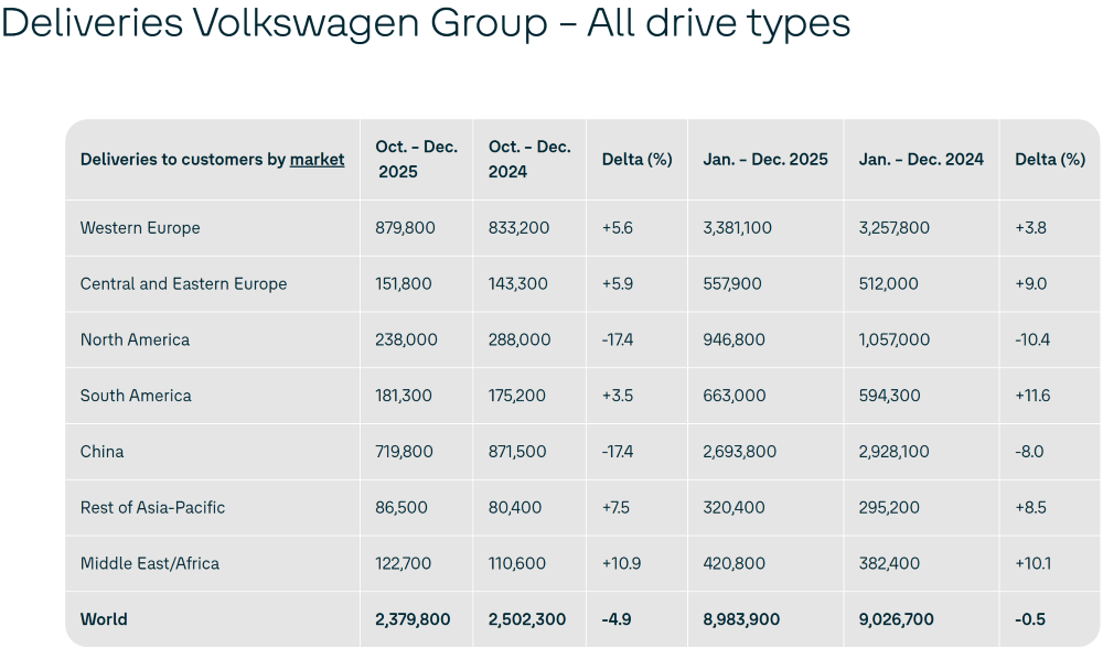 ▲大眾汽車集團(tuán)2025年銷量