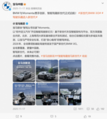 寶馬也宣布與Momenta合作,聯(lián)合開發(fā)面向中國市場的新一代智能駕駛輔助解決方案,將于今年在國產(chǎn)新世代BMW iX3上首發(fā)這套全場景領(lǐng)航輔助駕駛系統(tǒng)。