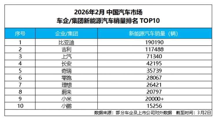 2026年2月新能源汽車銷量榜單出爐,比亞迪以190190輛的成績再度登頂,連續57個月穩坐國內新能源銷冠寶座,淡季之下盡顯龍頭韌性。盡管受春節假期、購置稅新政等因素影響,銷量同比有所波動,但數據背后的結構性亮點尤為亮眼。