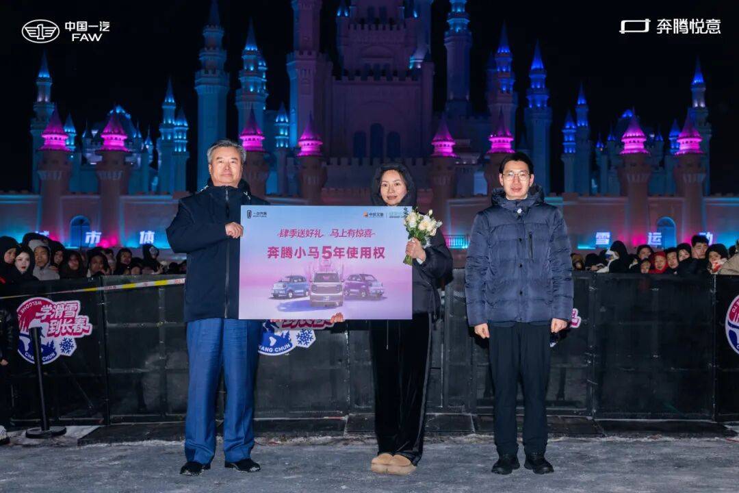 此次一汽奔騰深度聯動長春文旅,不僅為市民和游客送上了一份新春厚禮,有力支持了本土冰雪文化的發展,更彰顯了作為央企的責任與擔當。活動自啟幕便備受矚目,低門檻參與方式讓福利觸手可及,成為吸引眾人、造就超高人氣的關鍵。2月3日首輪抽獎誕生幸運兒并現場交車,3月3日終極抽獎盛典則將氛圍推向高潮,幸運兒喜提奔騰小馬5年使用權,雙重幸運圓滿落地,現場歡呼不斷。