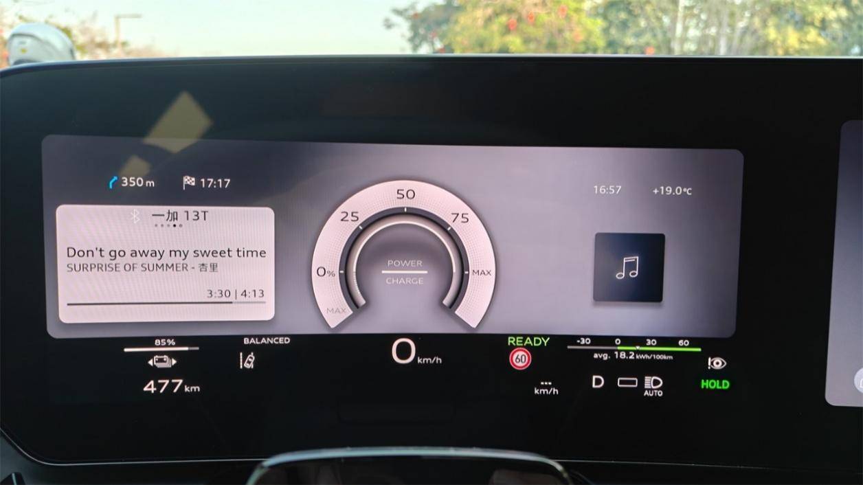踩下電門的第一腳,你就能感覺到它的扭矩并不是單純的線性增長,而是有著很迅捷、攀升迅速的初段扭矩曲線,以及持續(xù)性很強(qiáng)的后段扭矩輸出,并且有著和奧迪自家的油車相近的、充滿了機(jī)械沖擊質(zhì)感的加速力。