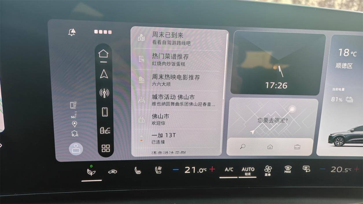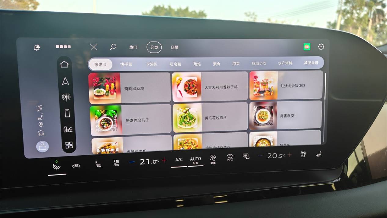 不過,車機(jī)系統(tǒng)的初始加載速度略慢;藍(lán)牙和網(wǎng)絡(luò)的穩(wěn)定性也一般,偶爾掉線,甚至出現(xiàn)過一次死機(jī)。更大的問題在于對(duì)應(yīng)用的管理,首頁上會(huì)多出不少莫名其妙的廣告推送,甚至還有菜譜推薦這種和日常行車完全不沾邊的信息流占用界面。