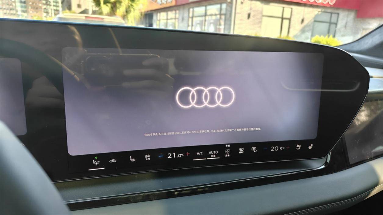 Q6L e-tron的中控臺(tái),感覺就像是在A3的基礎(chǔ)上嫁接了A5L的大連屏組和副駕屏。中控臺(tái)的厚度略大,加上前風(fēng)擋下沿偏低,視野開揚(yáng)感一般,好在車頭比較短,前方的視野盲區(qū)不會(huì)太大。