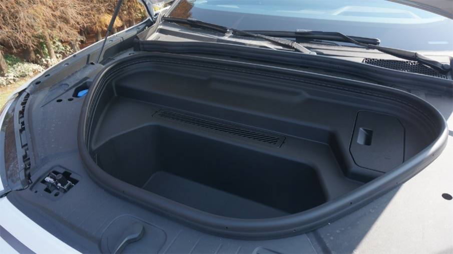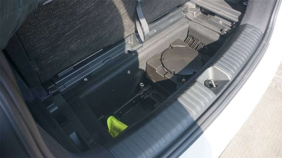 后備廂526L的容積中規(guī)中矩,地臺(tái)和門檻也有點(diǎn)偏高,好在內(nèi)部很規(guī)整,配備了完整的遮物簾以及相關(guān)的收納位置,下方隱藏的暗格也夠深。前備箱開口看著很大,實(shí)際上容積只有64L,勝在位置比較靠前,容易夠得著,不過底部沒有排水口,只能當(dāng)成普通的臨時(shí)儲(chǔ)物格來用。