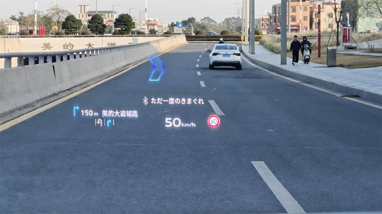路面指引圖標(biāo)的立體感很足,標(biāo)識(shí)設(shè)計(jì)也很形象,大部分情況都能看懂,而且基本不會(huì)同時(shí)堆兩種以上的指示。唯一的缺點(diǎn)就是沒有很好地與實(shí)際車道結(jié)合起來,指引的明確程度和小鵬最新一代的HUD依然有差距。