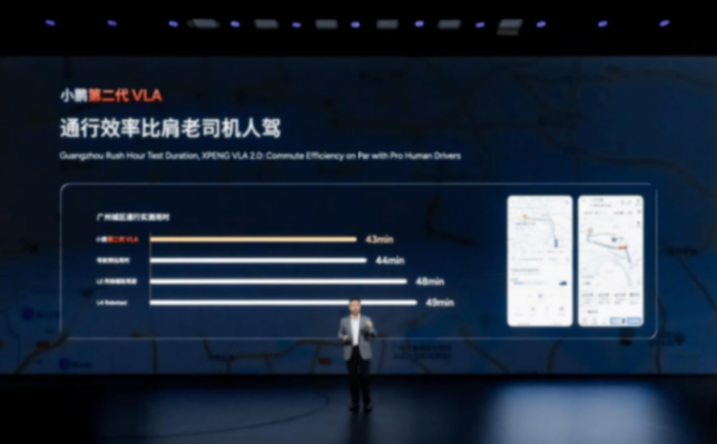 當然,前面我們提到了大家對輔助駕駛的一些不信任、不了解,小鵬第二代VLA也要去解決。小鵬曾經測試過第二代VLA和人類駕駛員行駛同一段路的時間,兩者相差無幾,這是希望解決很多老司機埋怨的“輔助駕駛太傻太慢”的效率問題。