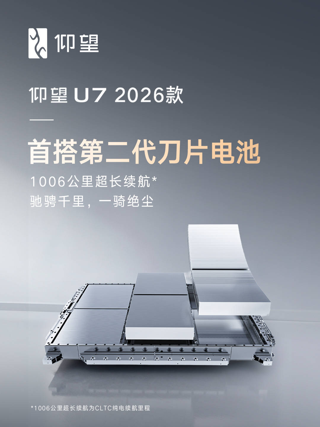 3月4日,比亞迪官宣第二代刀片電池將在2026款仰望U7上首搭。這款大型純電轎車也因此拿出了兩個關鍵數據:純電續航達到1006km,電池包容量為150kWh。