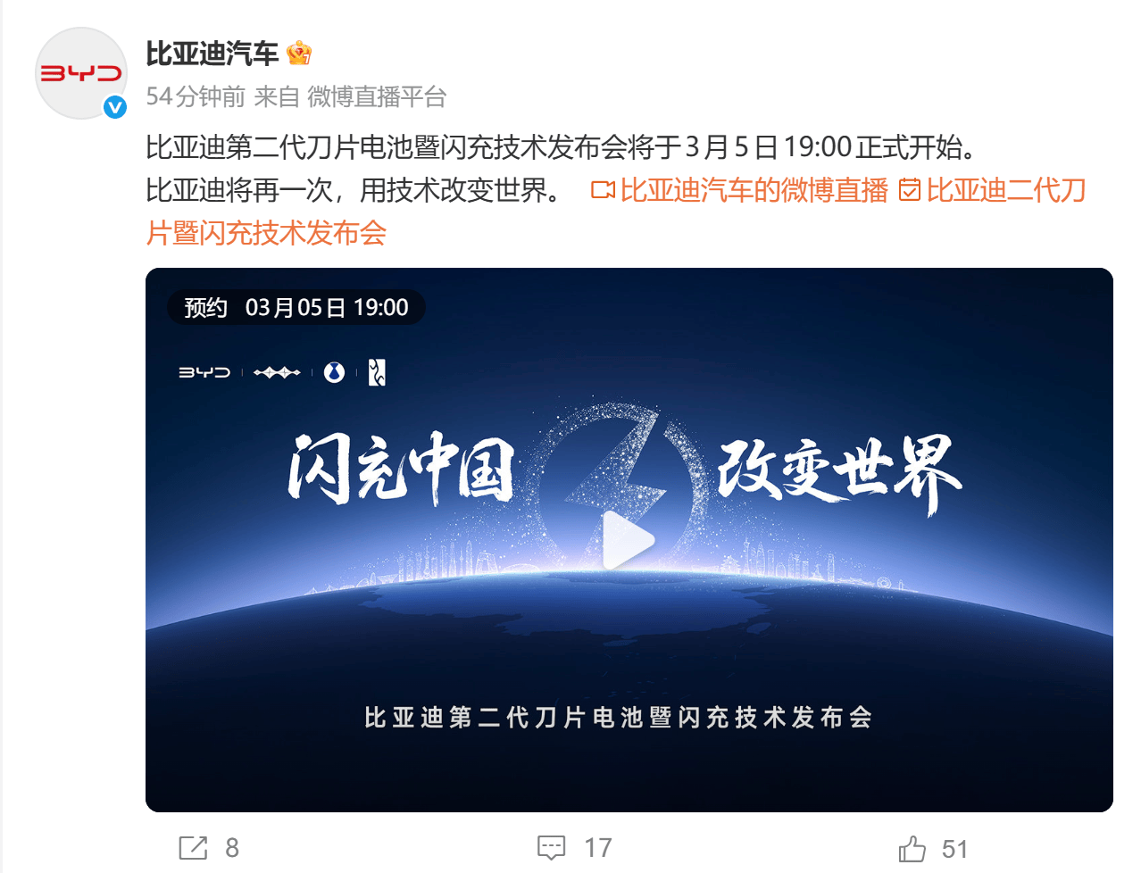 關于這塊電池的更多技術細節,比亞迪打算在3月5日于深圳舉辦專場發布會。行業里普遍在觀望的是:這套150度電池包加上兆瓦級超充,對電網的瞬時壓力怎么解?以及大規模鋪開后,那些非閃充車型的兼容性問題。