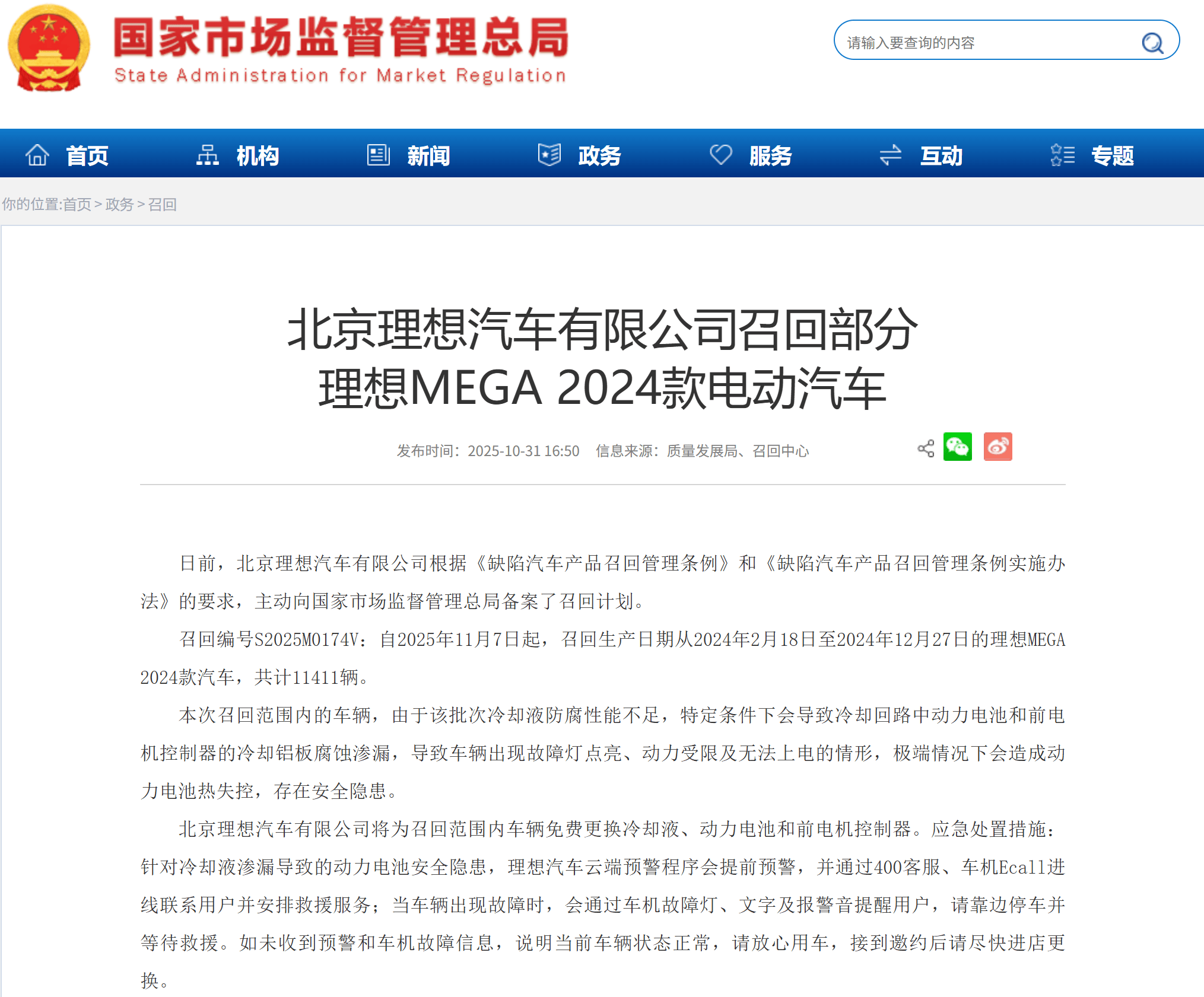 2025年11月,理想汽車宣布召回部分理想MEGA 2024款汽車,共計11,411輛,原因是冷卻液防腐性能不足,極端情況下存在動力電池熱失控風險。這件事的殺傷力非常直白——它把理想Q3從“還能賺錢”拉成了“直接虧損”。