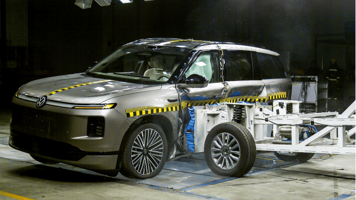 在發布會前夕,上汽大眾特意舉辦了一場碰撞安全體驗,ID. ERA 9X完成了80km/h 70%偏置高速追尾、56km/h正面100%重疊剛性壁障碰撞以及60km/h可變形移動壁障側面碰撞的“三連撞”測試 。