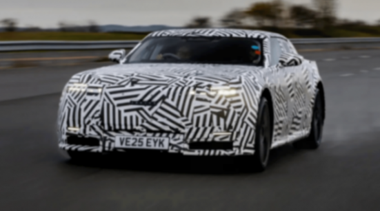 這臺原型車的噪音與靜謐性尚未最終定型,但整體質感緊湊、無任何震動,唯有車輪碾軋冰雪的聲響打破座艙寧靜。轉向輕盈且響應線性,不算犀利,也沒有強烈路感,卻沉穩順滑、易于操控,整體質感更接近賓利,而非Taycan那般跑車級精準度。