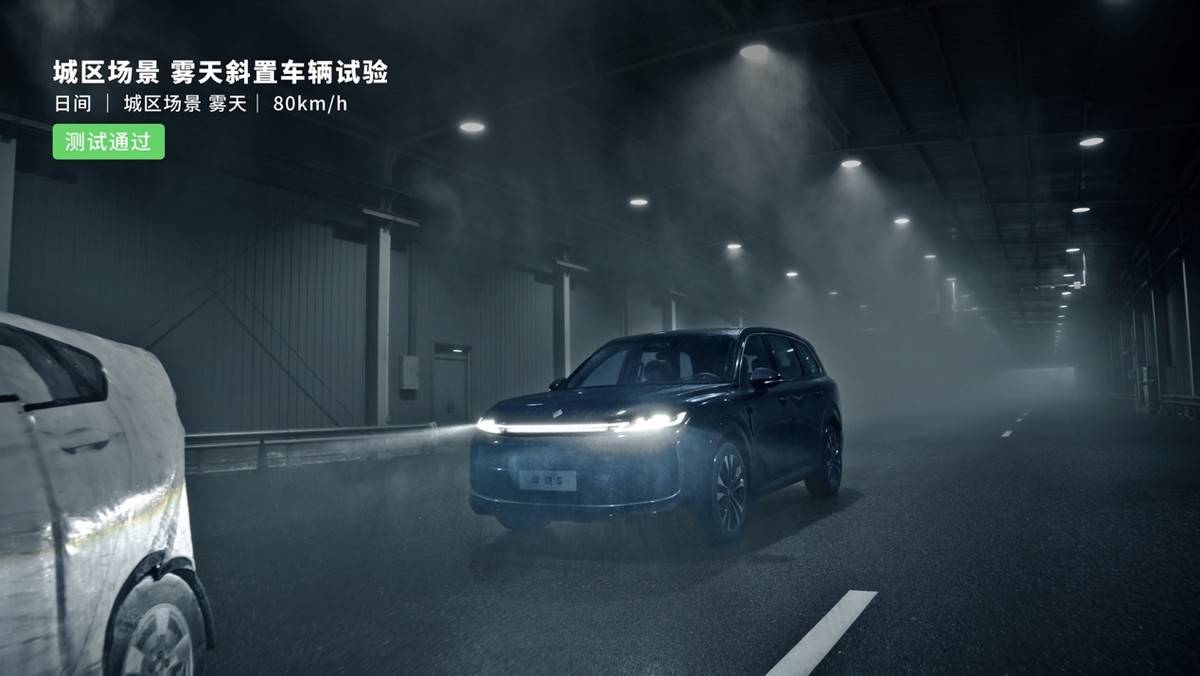城區(qū)極端天氣,穩(wěn)健應(yīng)對低能見度挑戰(zhàn):在極低能見度的雨天和霧天環(huán)境中,放置側(cè)翻車輛和斜置車輛做為目標(biāo)障礙物模擬真實事故場景,疊加雨天濕滑路面制動難度升級,華境S仍能以80km/h車速識別障礙物剎停,凸顯其駕駛輔助系統(tǒng)卓越的極端天氣適應(yīng)能力。