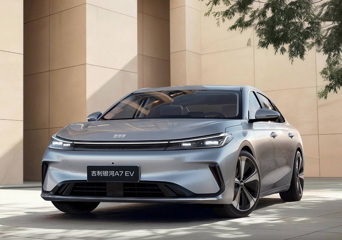 設計方面,銀河A7 EV外觀基本延續了銀河家族的風格,不過針對純電身份在細節上進行了調整。前臉采用了封閉式格柵,兩側霧燈區域改為縱向裝飾條,充電接口位于右前翼子板。車身尺寸方面,新車長寬高分別為4935/1905/1500mm,軸距為2845mm,相比插混版在長度和高度上略有增加,提供了更寬敞的內部空間。車尾的貫穿式尾燈樣式也進行了微調,更精致了些。