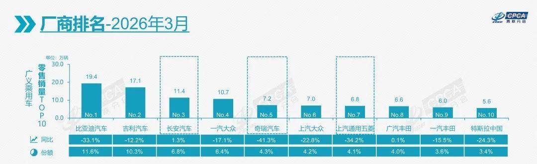 乘聯(lián)會最新數(shù)據(jù)顯示,一汽-大眾、上汽大眾今年3月合計市場份額為10.7%,高于吉利汽車,但落后于排名第一的比亞迪。盡管在合資品牌當中,大眾依舊穩(wěn)居第一,燃油車基本盤相當牢固。但新能源汽車的滲透率日益上升,留給大眾的窗口期不多了。