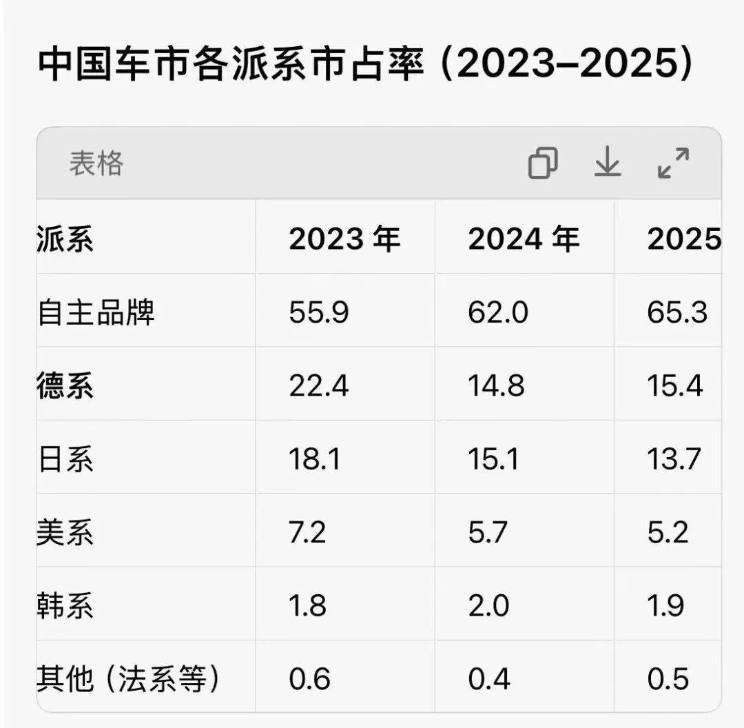 近年來,自主品牌憑借電動(dòng)化、智能化強(qiáng)勢崛起,在三電、智駕等技術(shù)與產(chǎn)品上的更新迭代節(jié)奏明顯比合資品牌快。即使是曾坐在中國車市頭把交椅的大眾,其燃油車基本盤也逐漸被蠶食,新能源賽道則難以突破。以大眾為首的德系在中國車市占比呈現(xiàn)下滑走勢,從2019年的超過24%,下滑至2025年的15.4%。