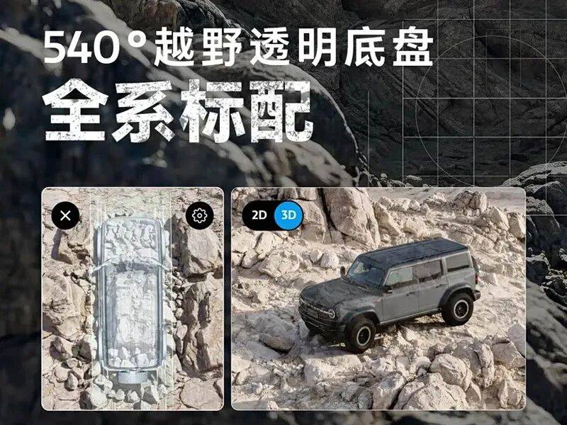 越野配置上,2026款福特烈馬全系標(biāo)配540°越野透明底盤,提供H.O.S.S. 3.0賽級(jí)懸架系統(tǒng),配備FOX 2.5''內(nèi)路旁通氮減,提供原廠35英寸大腳車輪和原廠可斷開防傾桿。并且新款烈馬還支持G.O.A.T.全地形智能管理系統(tǒng),提供7大駕駛模式,支持透明底盤聯(lián)動(dòng)。