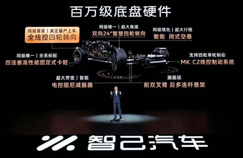 智己LS8行業同級首發的全線控四輪轉向系統,是這款車最受矚目的技術標簽。過去,四輪轉向與線控轉向僅出現在百萬級豪華車型上,而智己將其下放到25萬級市場,堪稱一次真正的“技術平權”。