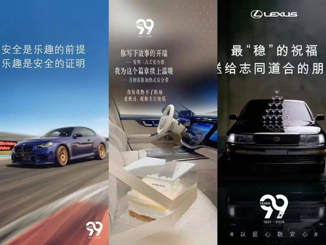 從傳統(tǒng)豪華巨頭奔馳、雷克薩斯,到中國新勢力蔚來、理想,再到同屬吉利集團的領(lǐng)克、極氪,乃至鴻蒙智行等跨界玩家,近二十家品牌不約而同發(fā)布定制化祝福海報,形成罕見的“全員同頻”景觀。至此,它的意義已經(jīng)不再是單純的“沃爾沃過生日”,每一張海報的文案、視覺背后,都藏著汽車行業(yè)的競合以及對用戶的極致爭奪。