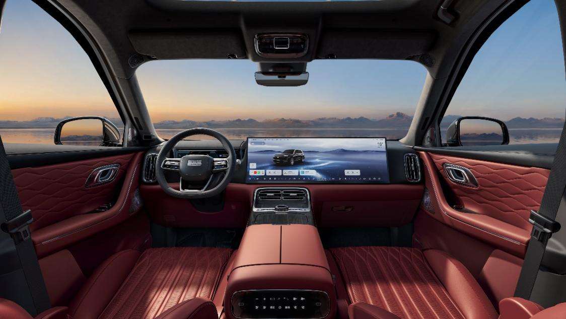 新車內飾采用專屬星云紅配色,門板采用全新“星河淺浪”飾紋,頂棚為麂皮手感材質,全車采用皮質包覆,帶來更奢華的視覺效果和觸覺體驗。同時,銀河M9黑金智曜版本還帶來了可選裝的“星空天幕”,帶來更好的駕乘氛圍。