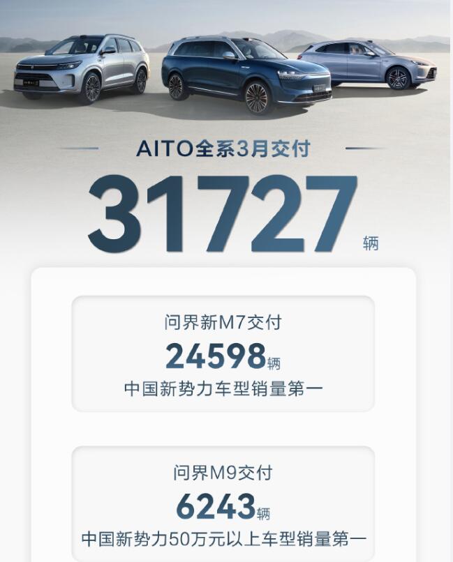 3月銷量/交付量:AITO問界系列全系交付新車31727輛