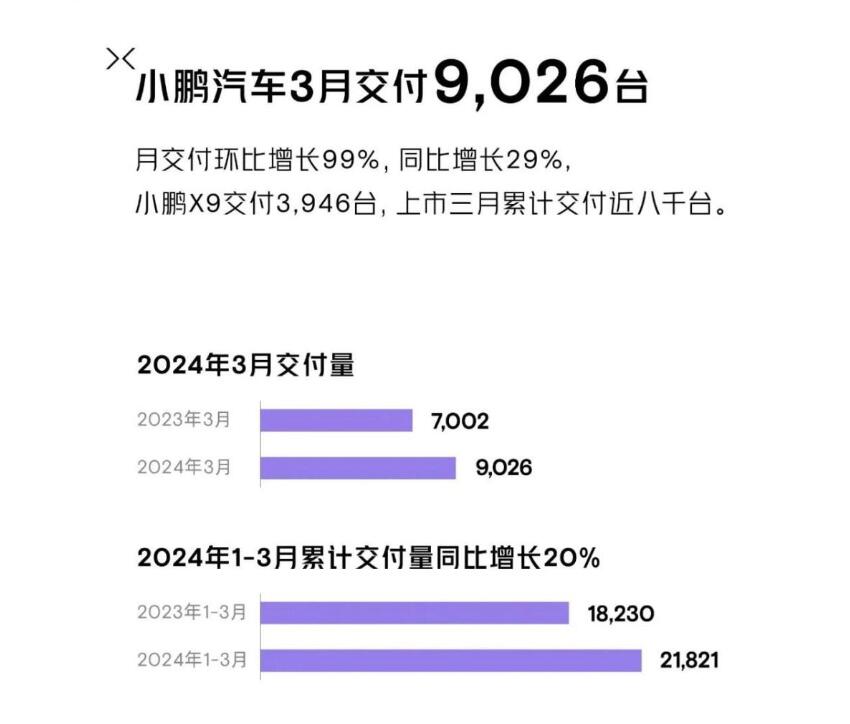 3月銷量/交付量:小鵬汽車交付量為9026輛