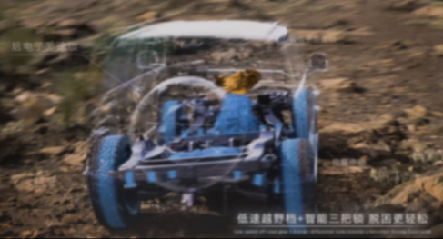除此之外,DMO還可以通過“前輪正轉、后輪反轉”的智能扭矩控制技術,將轉彎半徑縮小到3.4米。在很多越野工況下,可以用來越野車掉頭、轉彎的空間并不大,有了這種“豹式掉頭”技術,可以快速擺脫困境。